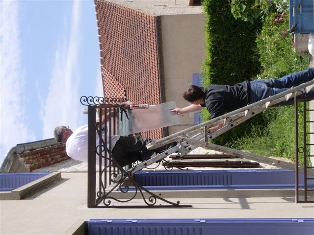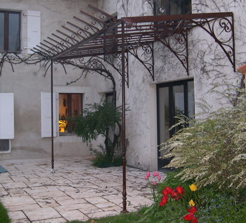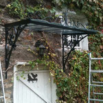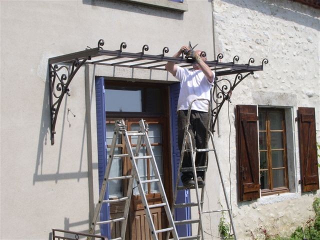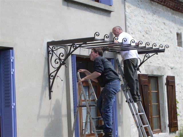 Marquise "La Forge", expédition dans toute la France (hors-verre).Marquise démontable en 4 parties (2 consoles, toit et frise centrale), assemblage simple par boulons. Cette marquise est fournie avec tout ce qui est nécessaire à son installation (boulons, tiges filetées, scellement chimique). L'installation est simple, comptez 2h à 2 personnes.