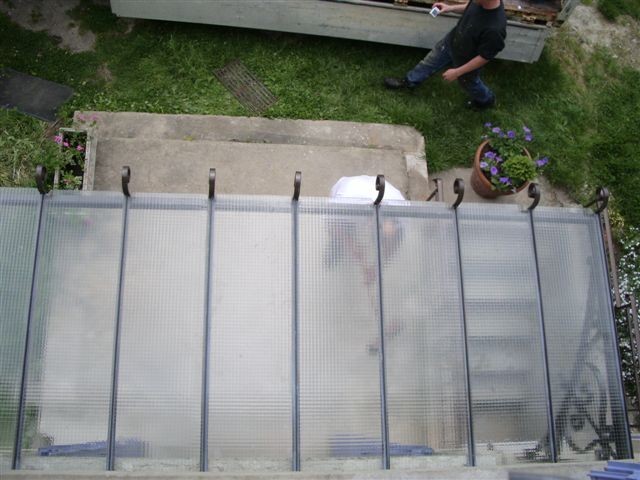 La marquise est démontable en 3 parties (2 consoles + toit) et s'assemble par boulonnage. Cette marquise est fournie avec tout ce qui est nécessaire pour son installation ( boulons, tiges filetées, scellement chimique). L'installation est simple, environ 1h30.